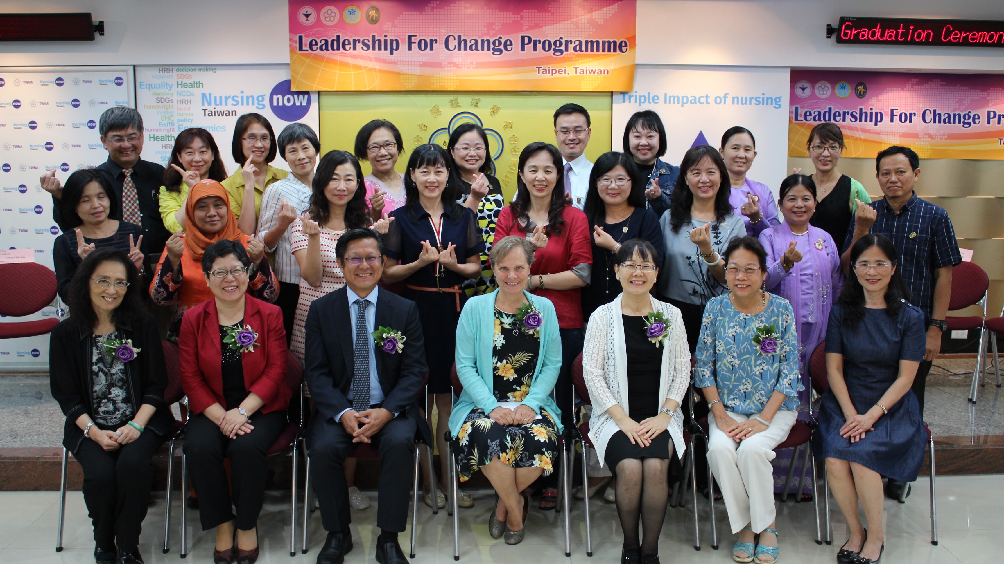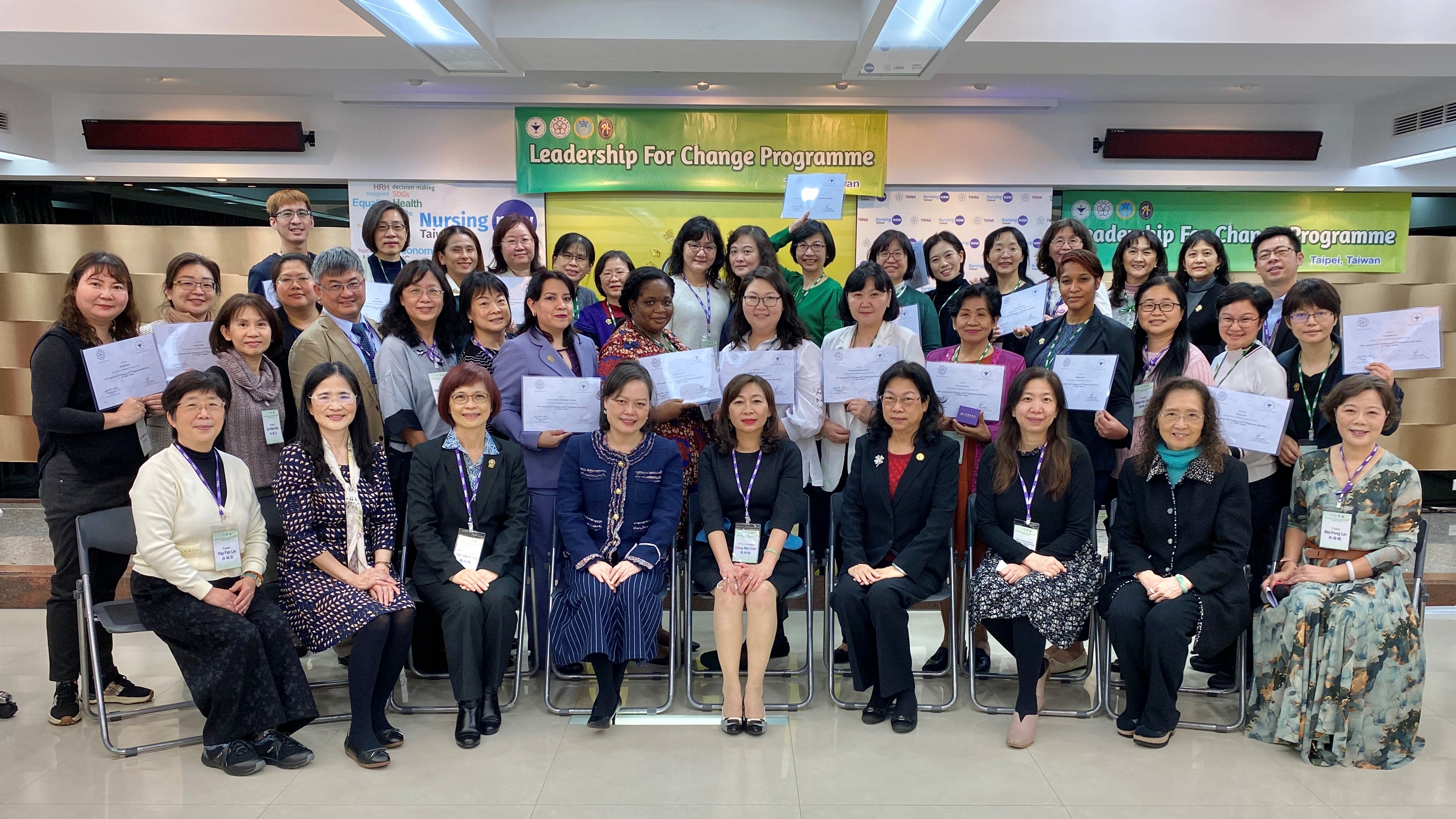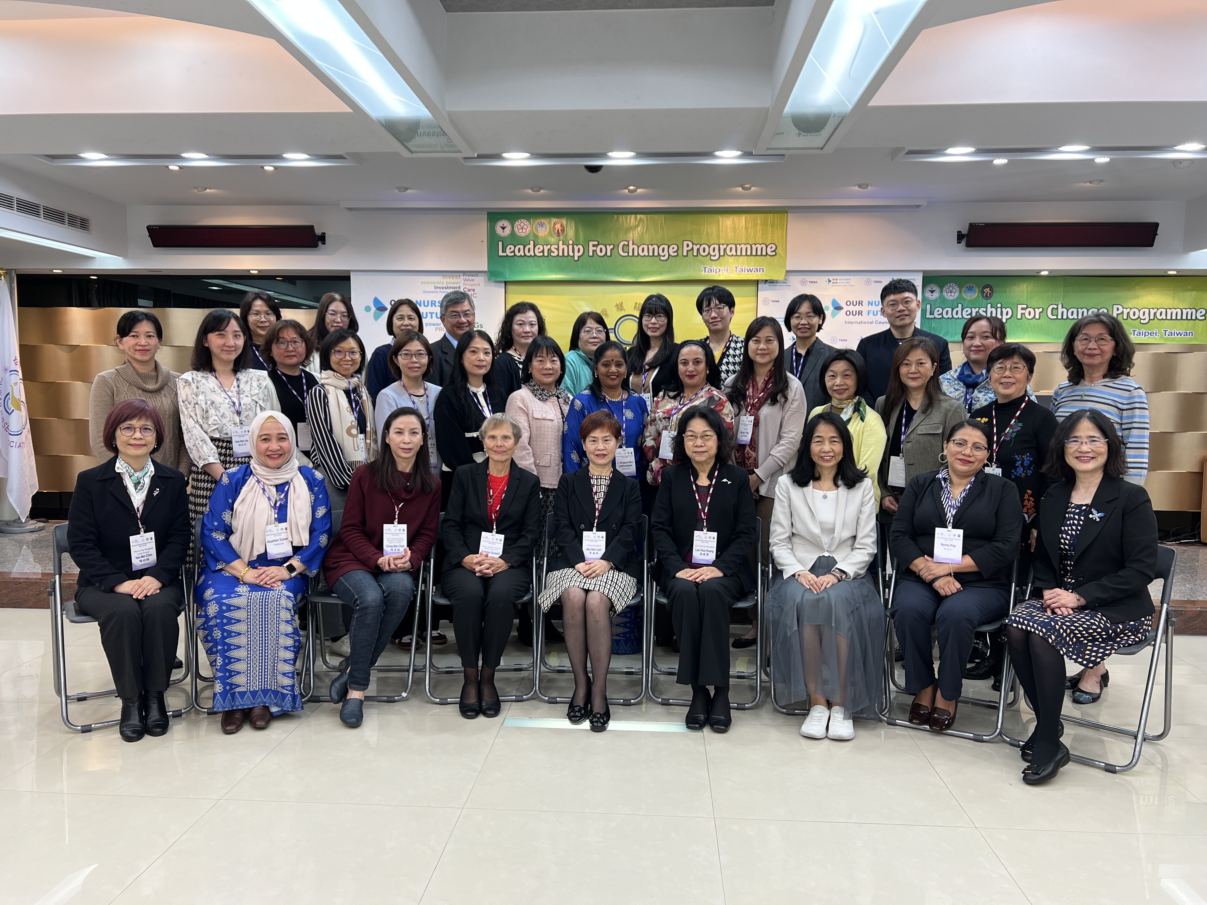 To prepare nurses with the leadership skills that are required to implement organizational change for the purpose of improving nursing practice and achieving better health outcomes, ICN established the Leadership for ChangeTM (LFC) Program in 1995. Approved by the ICN, TWNA launched the 1st LFC in 2015. As of year 2025, TWNA have conducted 6 cohorts of LFC program and 127 nurse leaders (96 from Taiwan, 31 from Myanmar, Indonesia, Vietnam, Mexico, Mongolia, Philippines, Saint Lucia. Argentina, Cambodia, Paraguay, Belize and Malaysia) have completed the LFC training in Taipei.